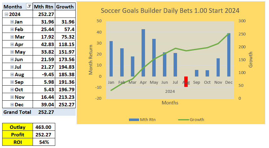 When Den created Soccer Goal Builder, he was looking for a way that was quick to find the selections to bet, and the manual shows you that, and that is reflective in the results we publish.